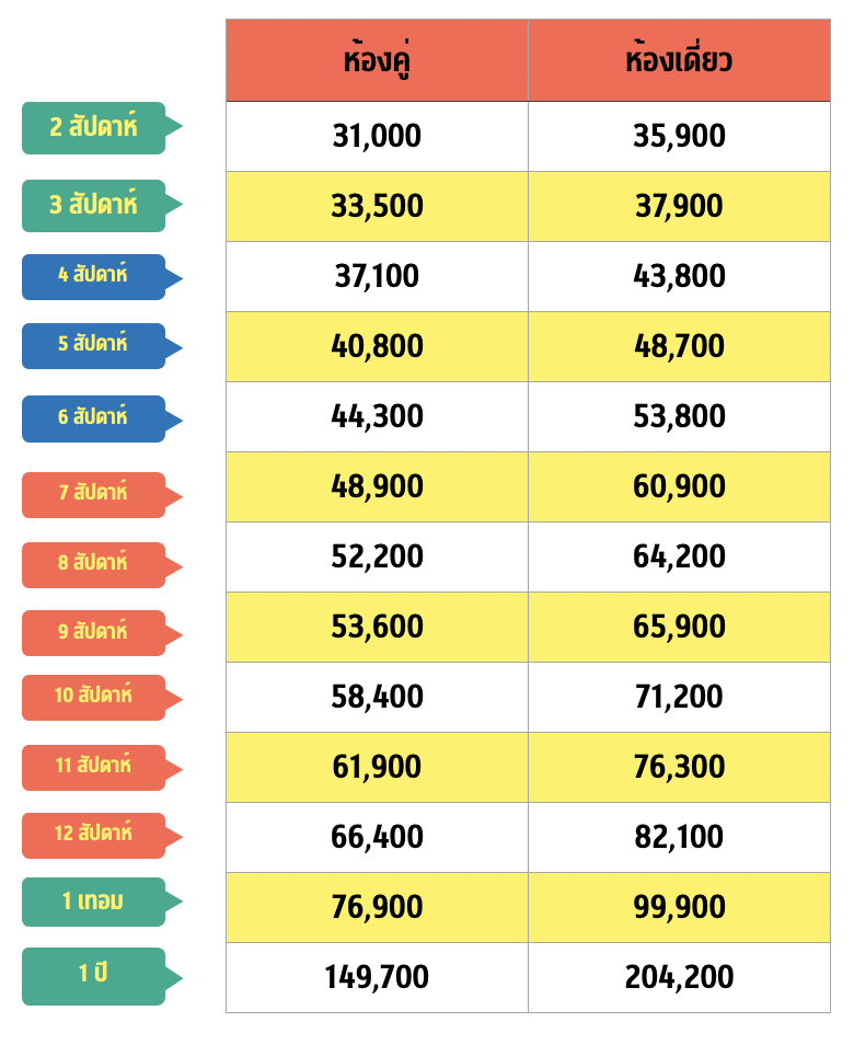 เลือกเรียนได้ 2 สัปดาห์ – 1 ปี