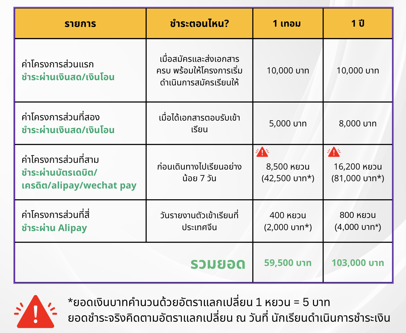 4) ชำระค่าโครงการส่วนที่สองหลังจากได้รับใบตอบรับเข้าเรียน